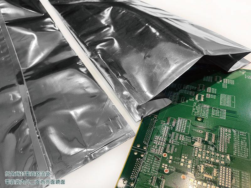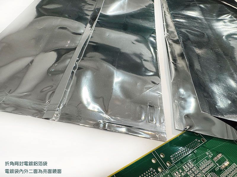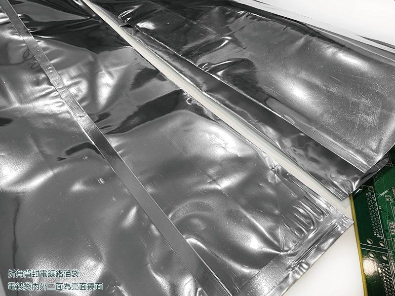 由VMPET/ LLDPE材質組成,外觀具光澤性、耐穿刺性佳且針孔少、防護效果佳、增強遮光抗紫外線、防氧防潮性極佳、具金屬質感,可另做抗靜電處理,具靜電阻隔性,由外部將靜電荷消除,以達到保護包裝內容物之功能,適合真空鍍鋁加工,厚度均勻、晶點少、鍍鋁層金屬接著性優良,貼合電鍍膜可有更高的阻氧阻水效果、加長時間保存、水氧氣阻隔性佳、可冷凍保存、內含金屬不可微波、EMI防護佳、具高抗張強度、良好的遮光性、可加抗靜電處理表面抗靜電效果良好,可達108-11 Ω/sq