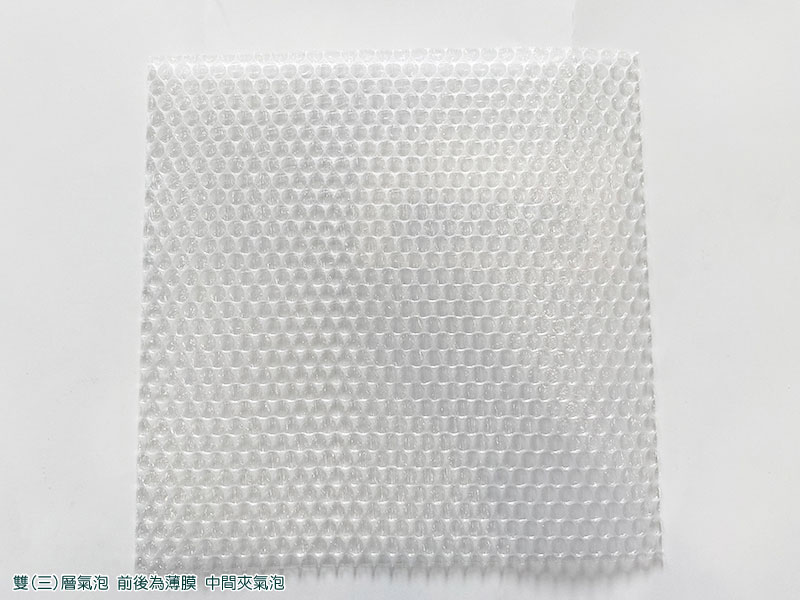 氣泡膜是由聚乙烯片材貼合在一起製成的緩衝材料(緩衝材料)。具有優異的緩衝性和柔韌性,推薦用於包裹和包裝產品、填充間隙、移動等。有多種公版尺寸可以選購,製袋、裁片也可依客戶需求提供小量訂製各種尺寸,歡迎洽詢